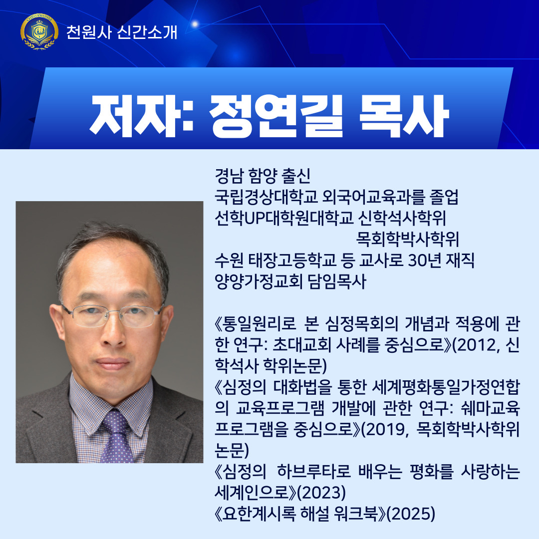 저자는 경남 함양 출신으로 국립경상대학교 외국어교육과를 졸업하고, 선학UP대학원대학교 신학석사학위 및 목회학박사학위를 받았다. 수원 태장고등학교 등에서 교사로 30년 동안 재직했고, 양양가정교회 담임목사로 시무하고 있다.